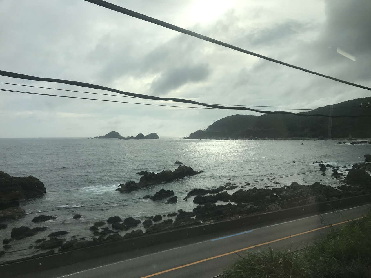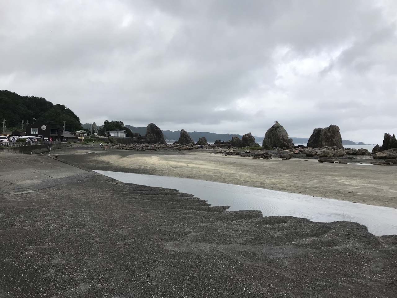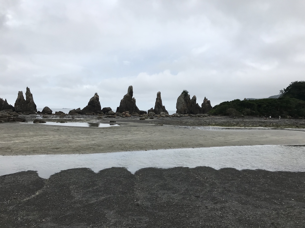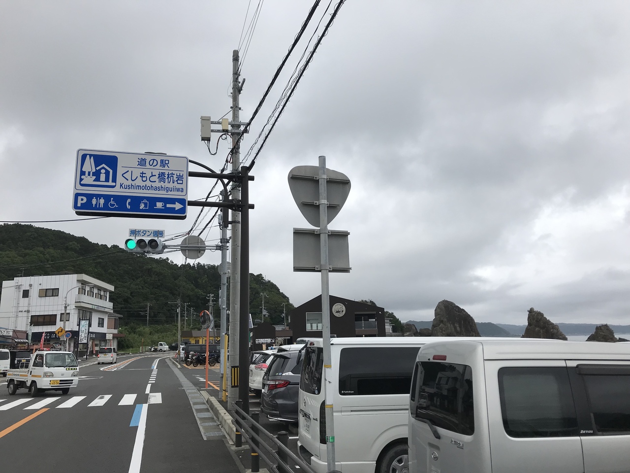 道の駅くしもと橋杭岩は、名前に全く偽りが無く、眼前に広がる風景は海岸で橋杭岩だ。