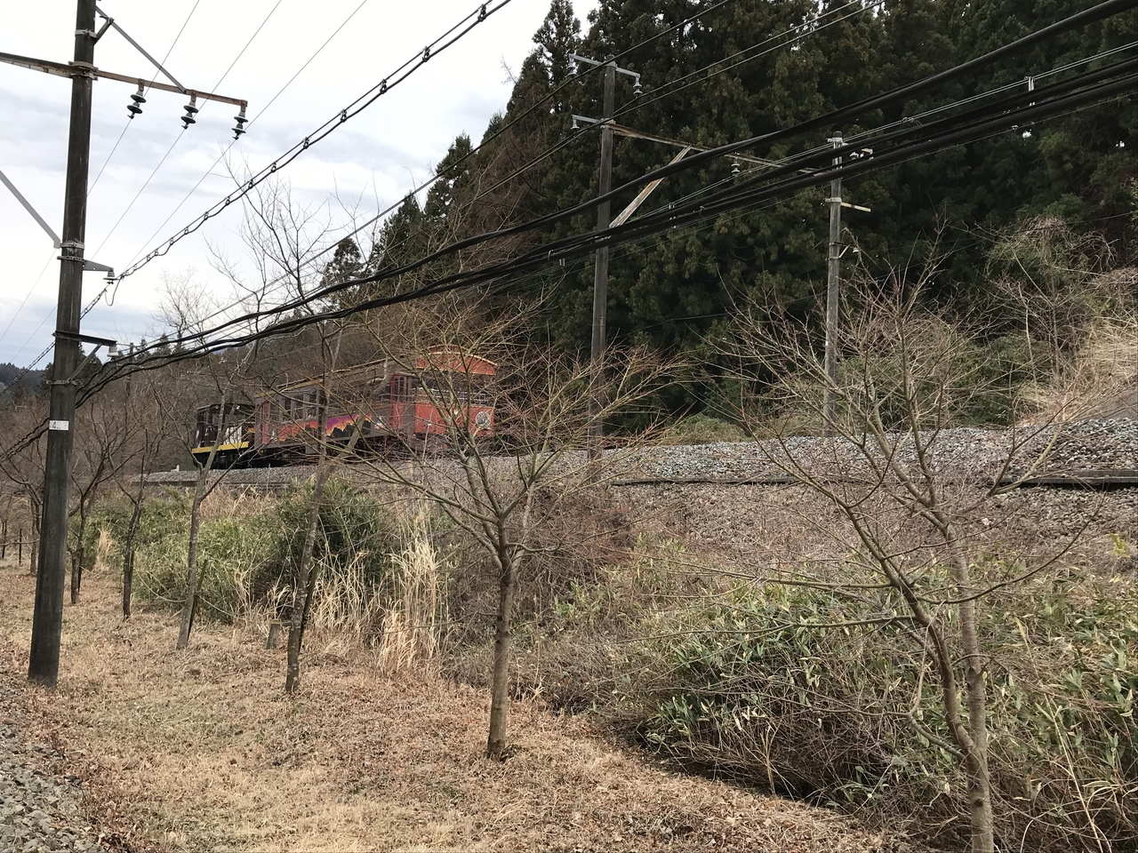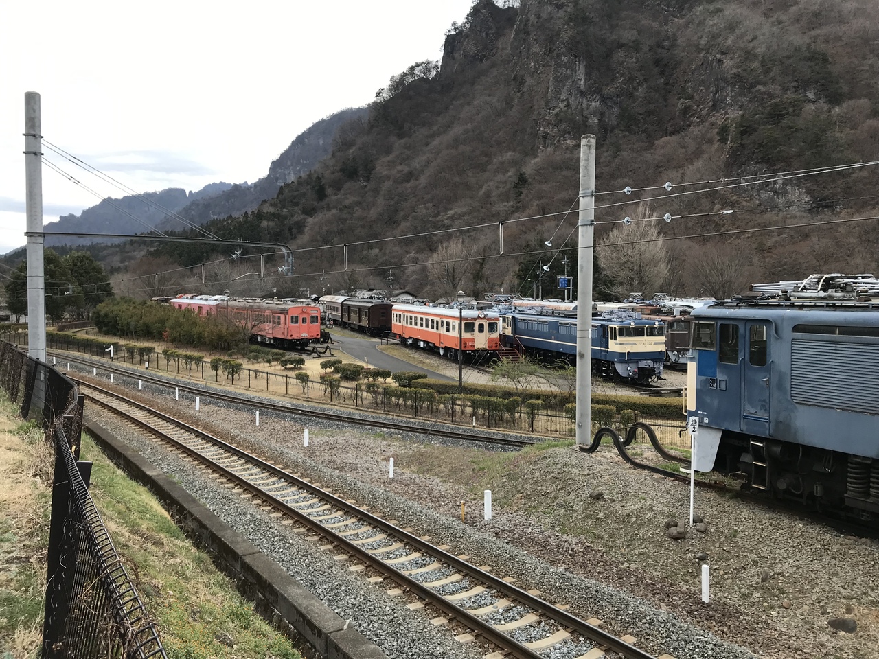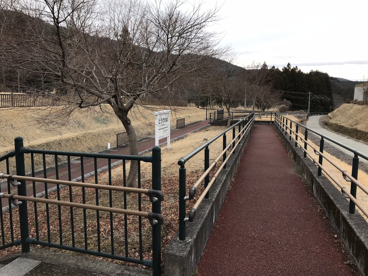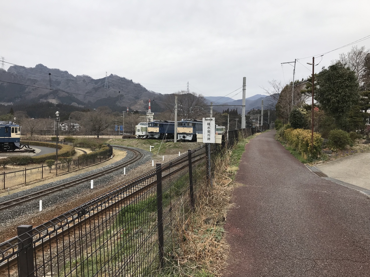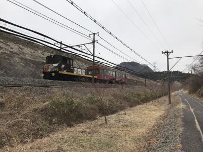 起点から湯の峠間のアプトの道は、長い直線コースなので気分が滅入った。アプトの道起点から峠の湯まではアプトの道と並行して、ぶんかむら駅(起点)~まるやま駅(旧丸山変電所)~とうげのゆ駅(峠の湯)と、観光列車の碓氷峠トロッコ列車が走っている。時間が合えば、料金は高いがトロッコ列車に乗るのも良い。