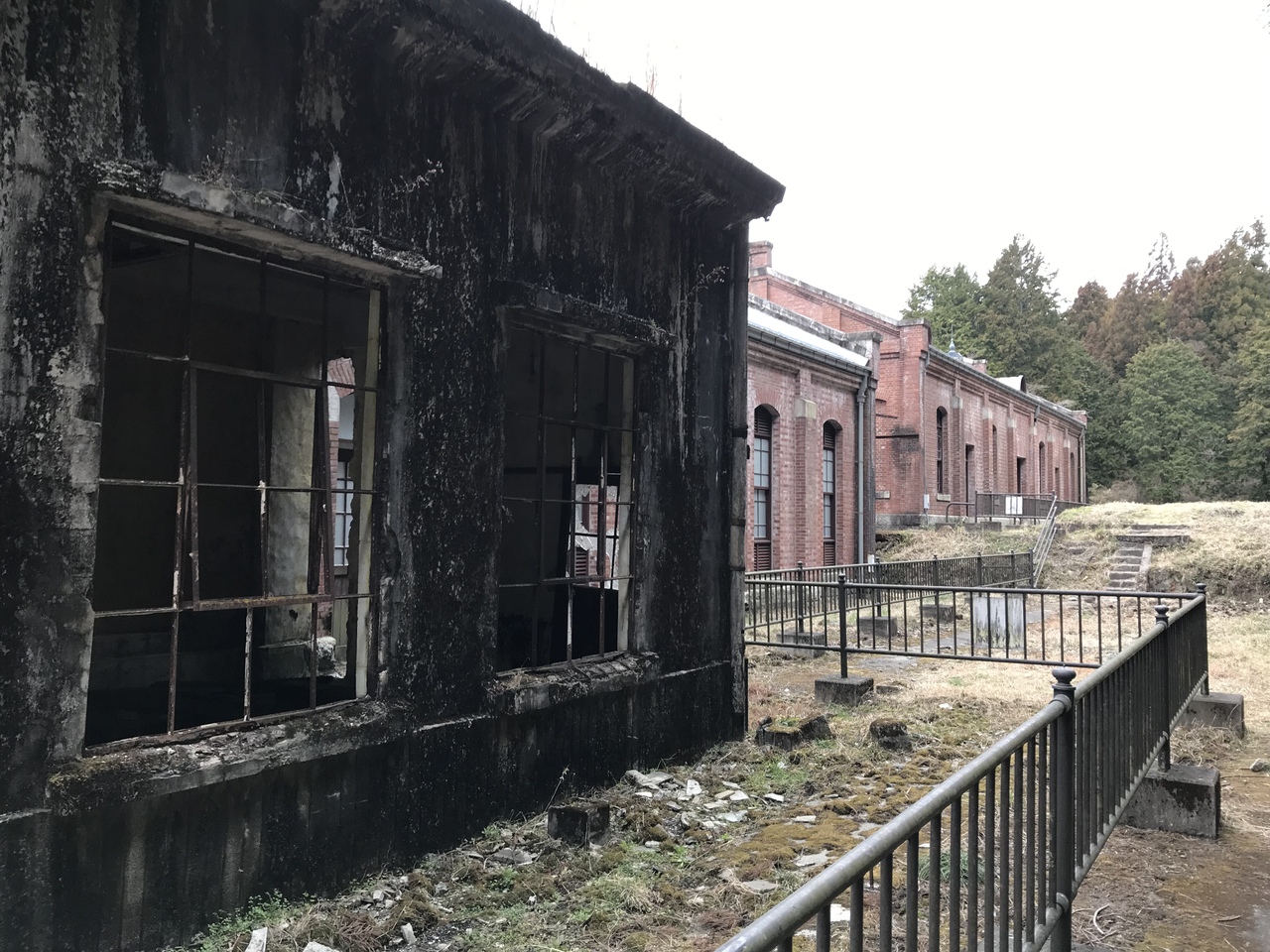旧丸山変電所は、裏手に回れば廃墟感が満載。