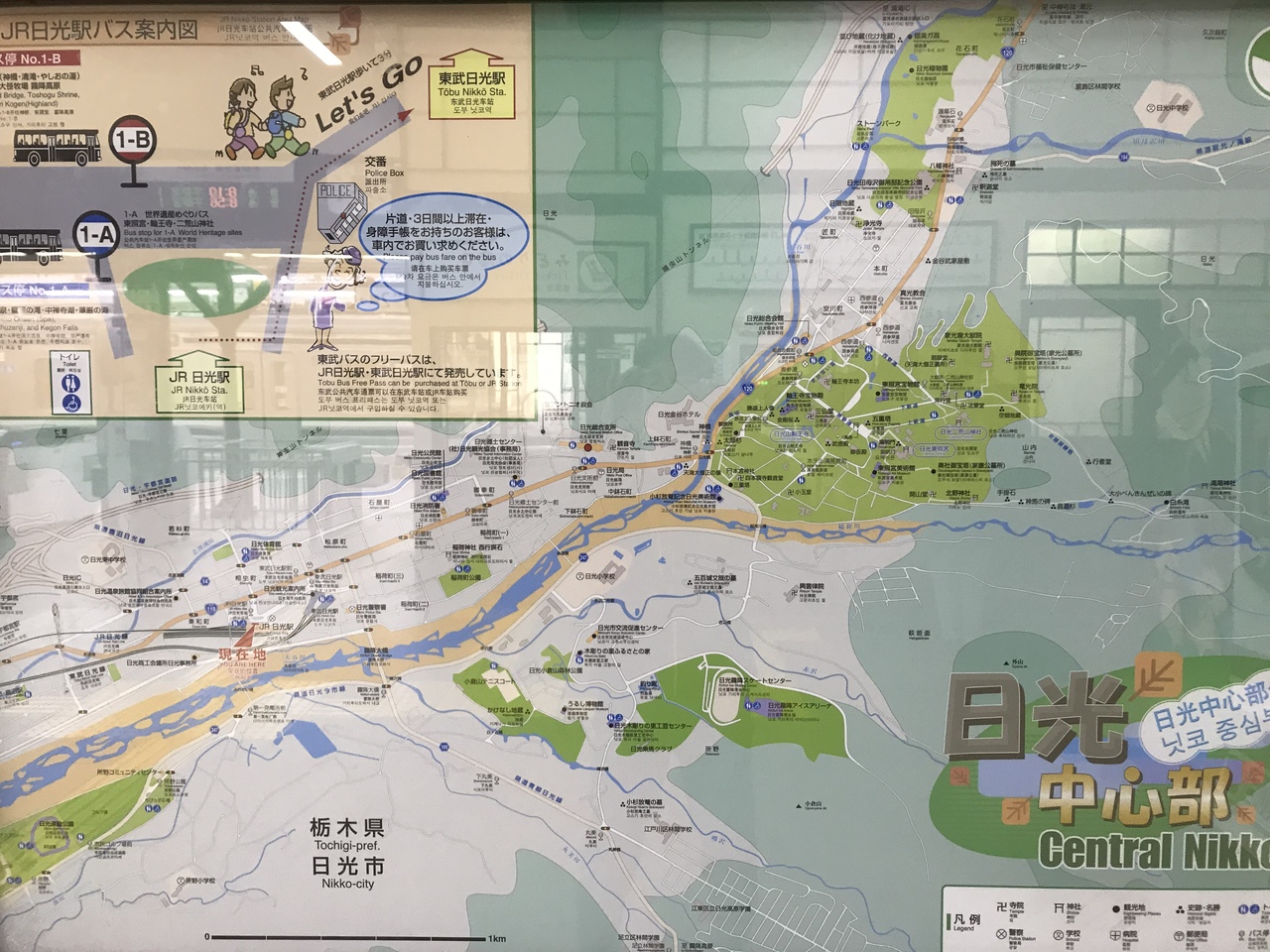 日光観光案内所は、風格あるJR日光駅の構内の一角に、駅と同調する作りで設けられていた。海外の観光客が多いことを実感させる英語表現の観光案内所だった。