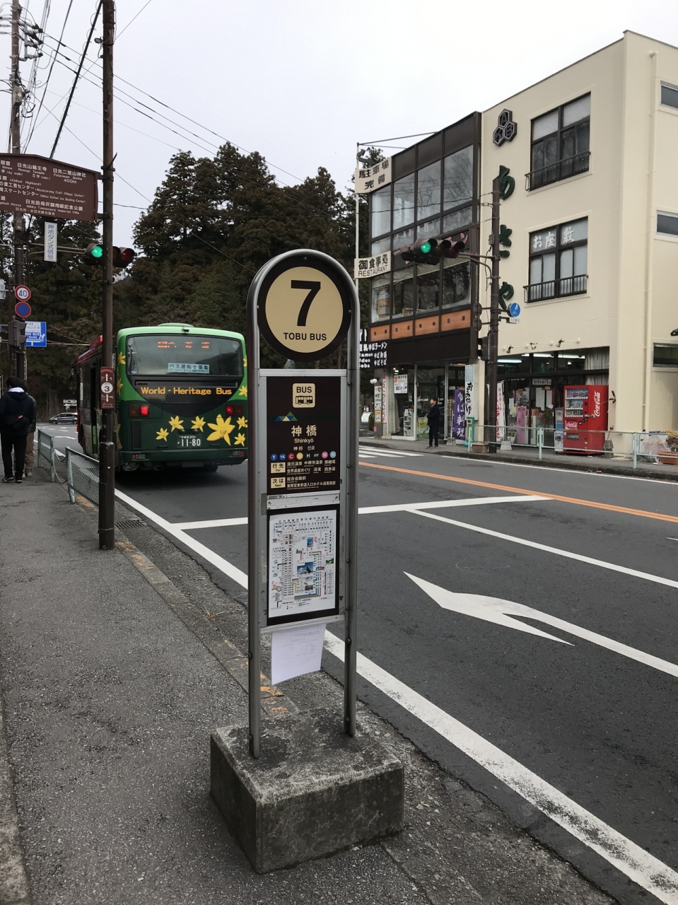 JR日光駅から日光東照宮までの地理感が無く、電車到着時に見合ったバスの発着があったので、時間活用の為に、往路は東武バスを利用し日光東照宮に向かう。神橋バス停で下車。乗車時間は7分程だった。