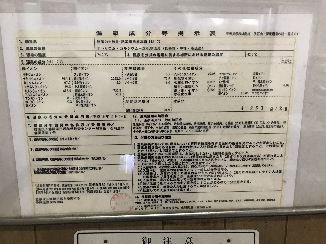 源泉が74.2度と高温の為、加水しているが源泉掛け流し熱い湯。- 旅行時期