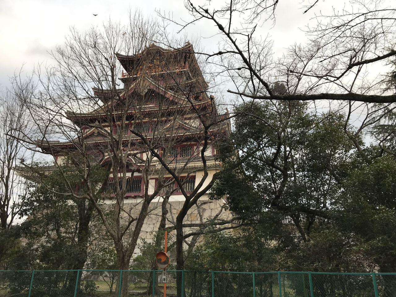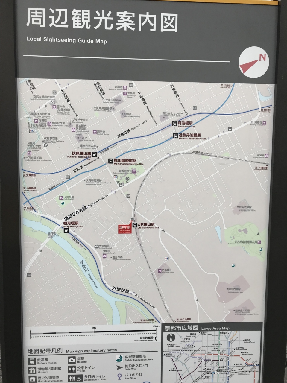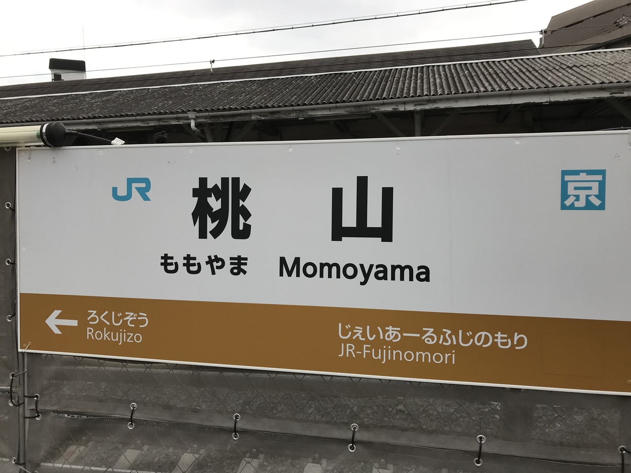 JR桃山駅から見える木々の覆い茂った小山が明治天皇御陵である。