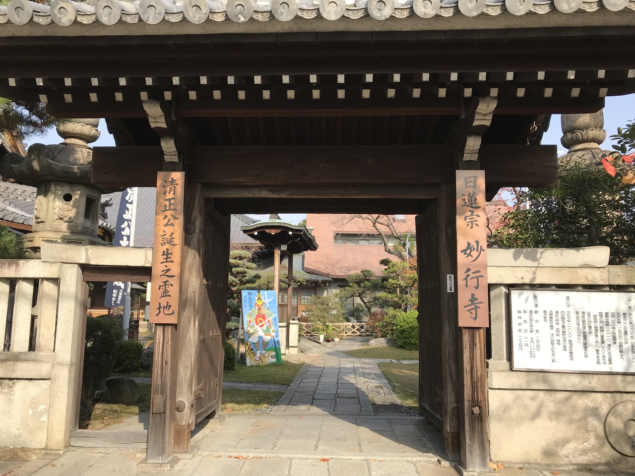 豊臣秀吉の生誕の地として整備されている中村公園に妙行寺がある。