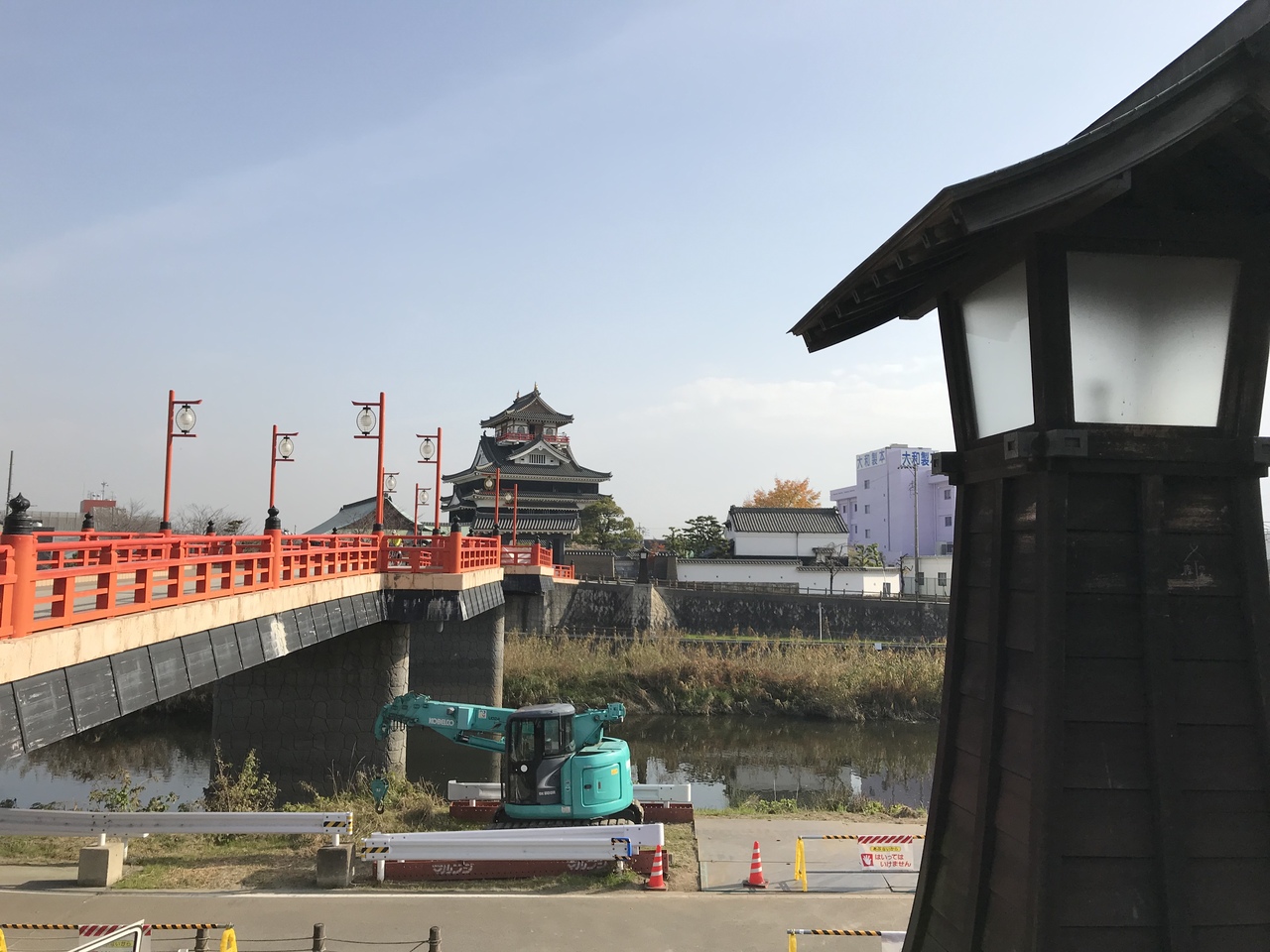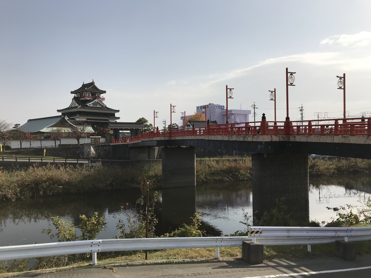 JRの車窓から、川沿いに建つ天守閣が見える。織田信長の拠点となった清洲城である。