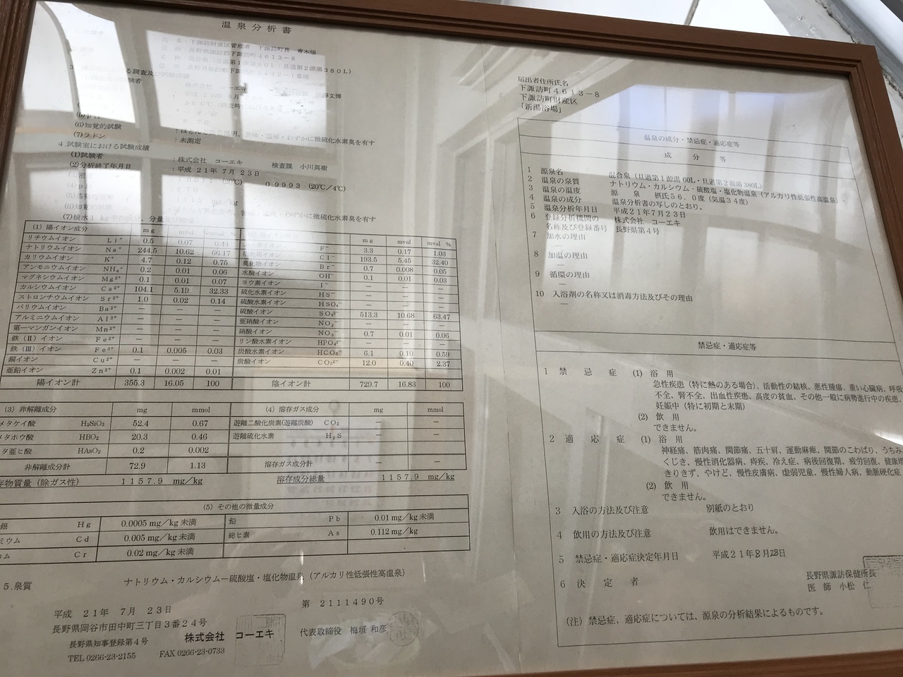 下諏訪温泉の他の共同浴場の湯に比べるとぬるめだが、街のぬるめのスーパー銭湯の湯に慣れた人間にとっては、かなり熱い湯だ。