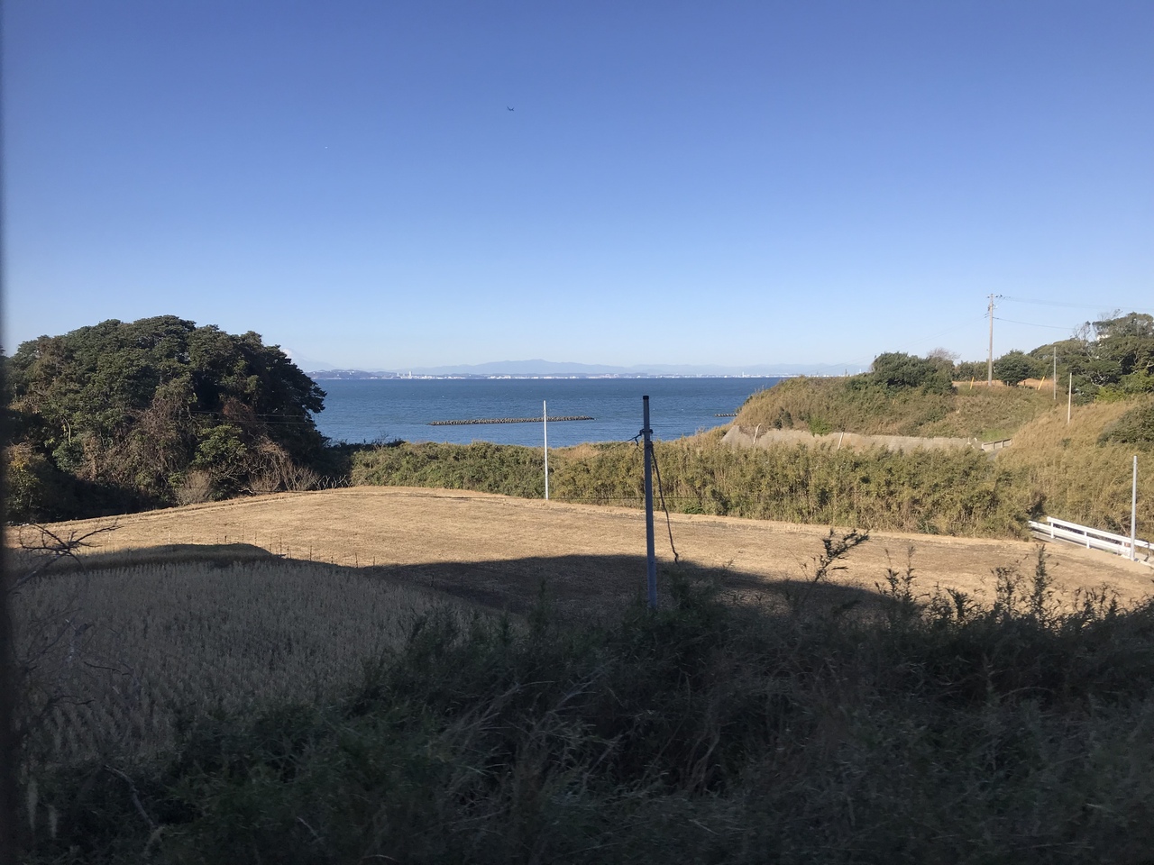 東京駅から千葉駅までは大都市間の谷間を、千葉駅を過ぎたあたりから風景にガラッと変化がありまるで原野の中走っている風景になる。