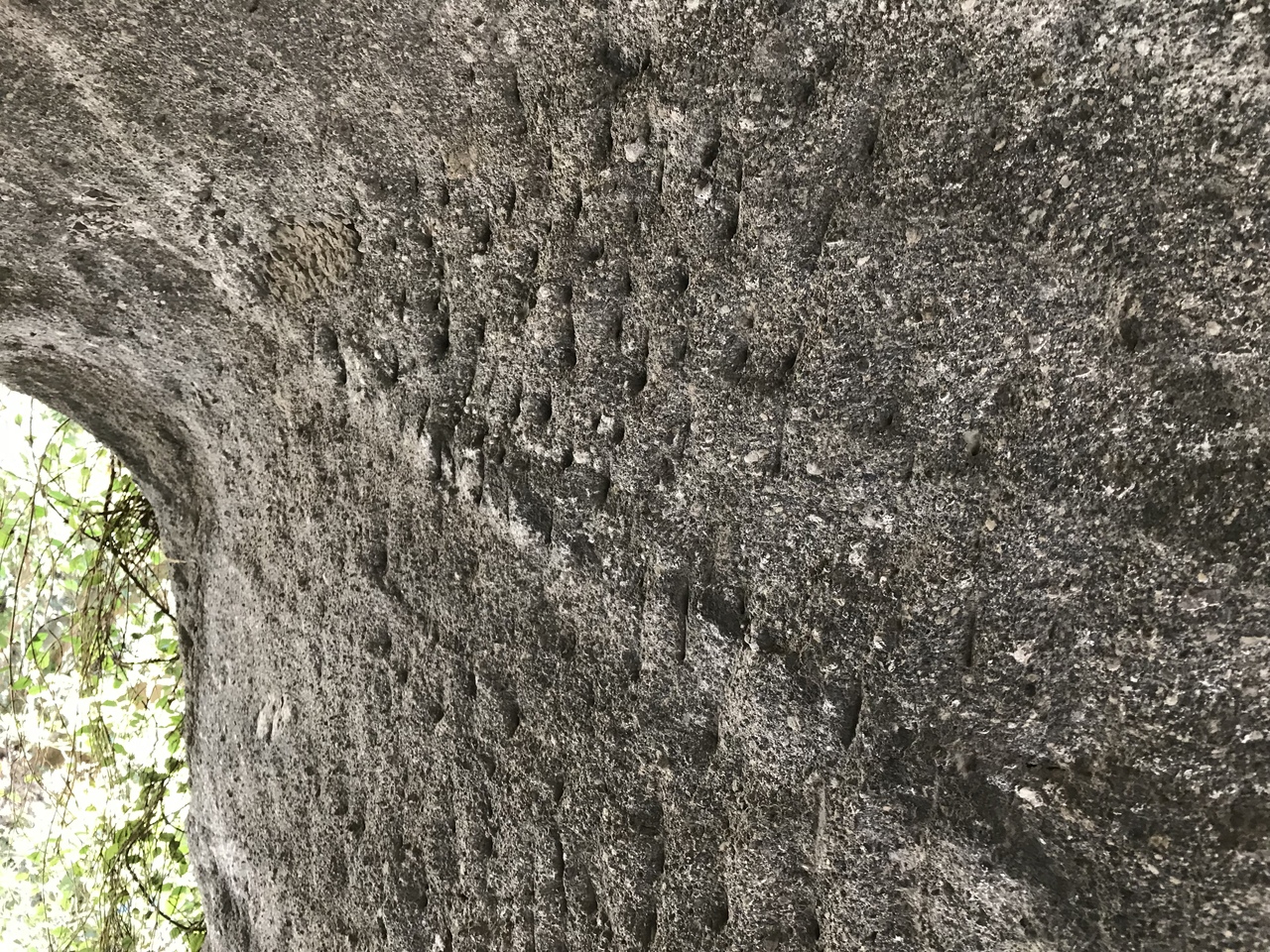 下ると百尺観音に着く。この磨崖仏も見応えあり。磨崖仏付近の切り立った崖は、日本的な風景ではないと感じた。