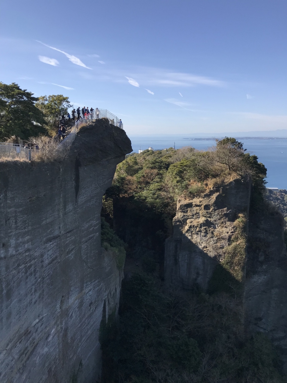 山頂部の地獄のぞきからの眺めは、地球が丸く感じ、その先の風景には富士山も見ることができ、絶景だ。