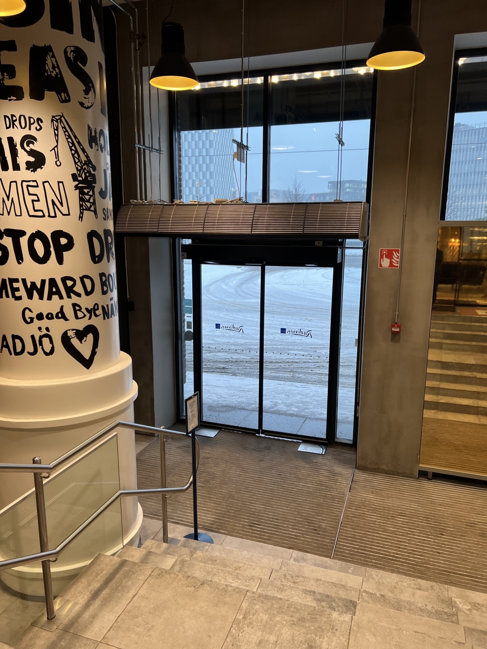 トラムの駅からは、近い。但し、ヘルシンキは雪が降ります。着いたとき道路の雪は少なかったが、ホテルのレストランで夕食を食べていたら、雪がどんどん降ってきた。さすがヘルシンキかと思ったが、翌日は歩道に雪があり、スーツケースを動かすのが難儀でした。これはホテルのせいではない。ホテル自体は朝食込みで安く、二人で一室24000円。いつもこの価格ではないでしょう。ラディソンブルーのホテルは欧州では広く大都市にあり、同じ水準の設備なので、安心です。
