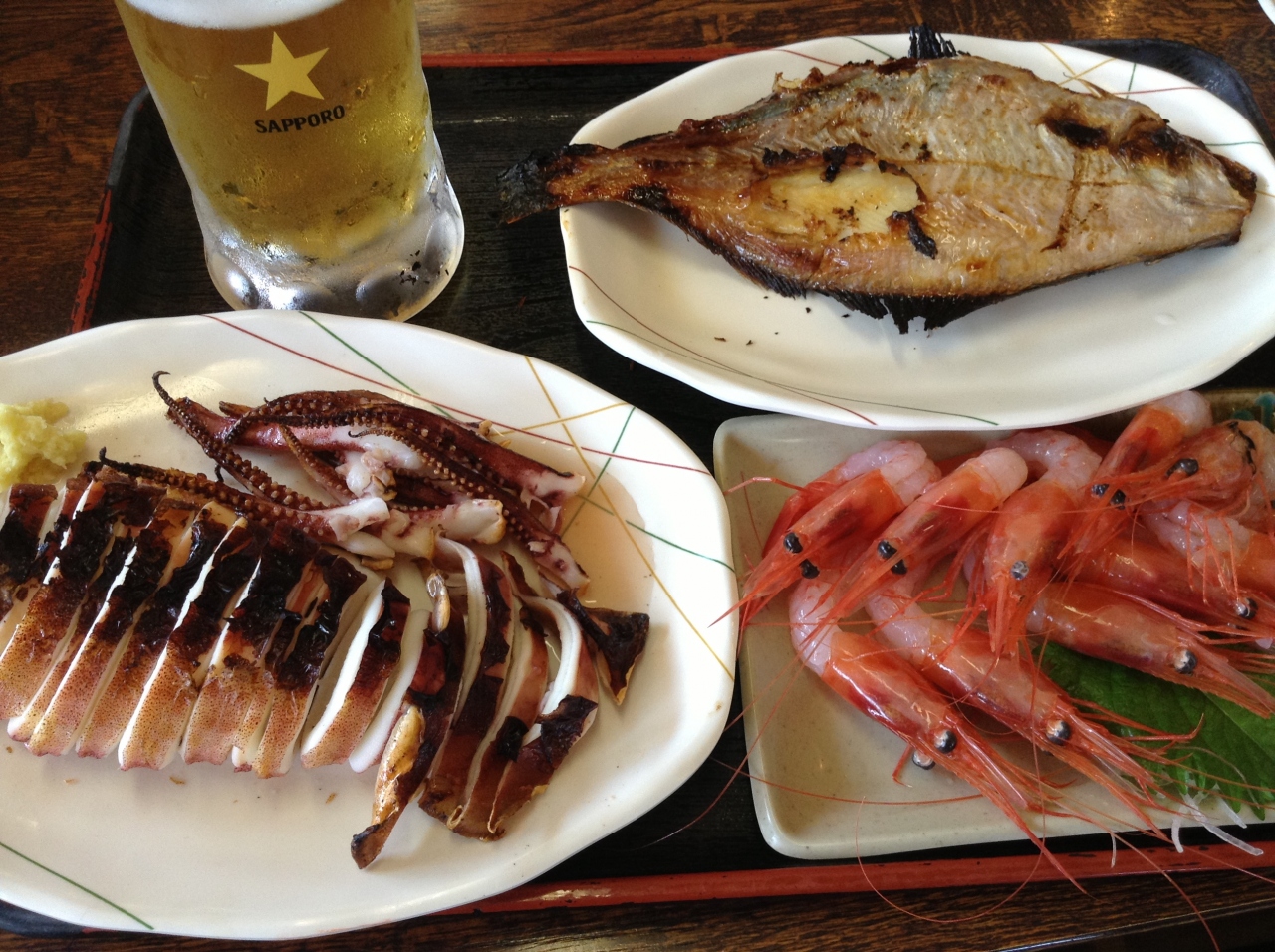 もちろん店頭で焼いている焼きたての美味しいイカもぱくぱく頂きました!- 旅行時期