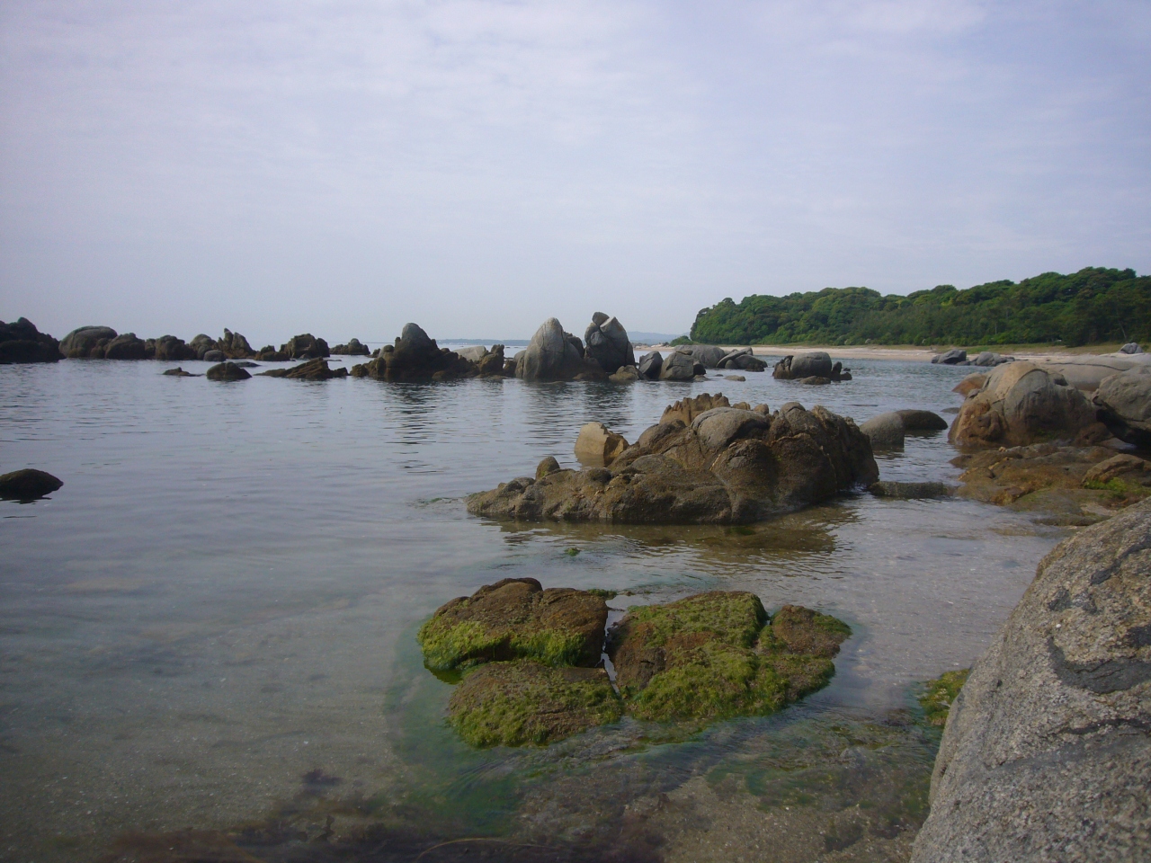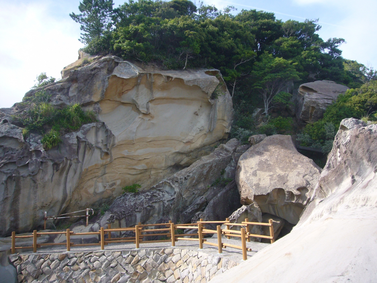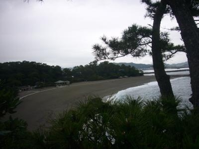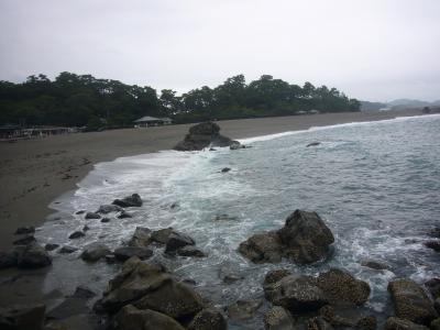 宿泊ホテル(ヴィラくにさき)での朝食後にそのまますぐ海へ。広々とした砂浜と奇妙な形の岩石の組み合わせ。また背景となる松林もなかなかのものでした。まさに白砂青松と奇岩による絶妙のコントラスト。大分百景の一つになっているそうです。