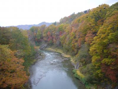 毎年、春の桜と秋の紅葉時期に訪れている夕張「滝の上公園」です。今回はバスツアーに参加しての訪問でした。紅葉のピークはちょっと過ぎていたようでしたが、それでも夕張川の渓谷美と吊り橋と紅葉のコントラストは何回訪れても感動を新たにさせてくれます。