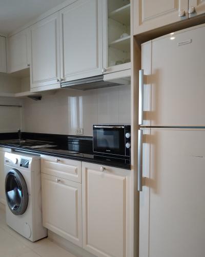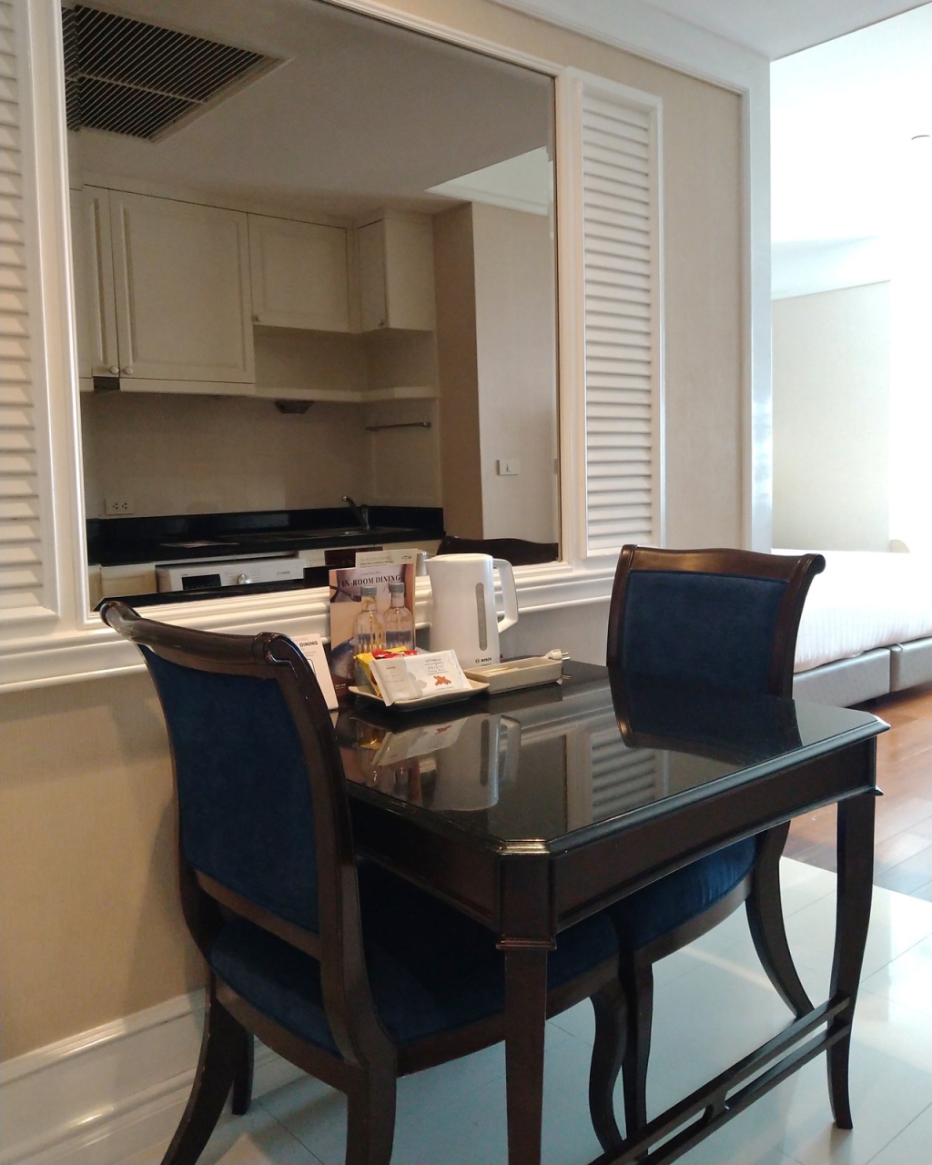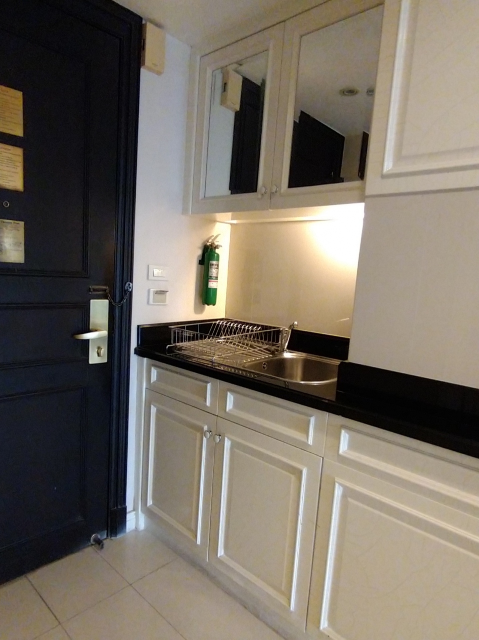 お部屋にキッチン、洗濯機が付いています。暑いバンコクでは毎日洗濯できるのが有難かったです。