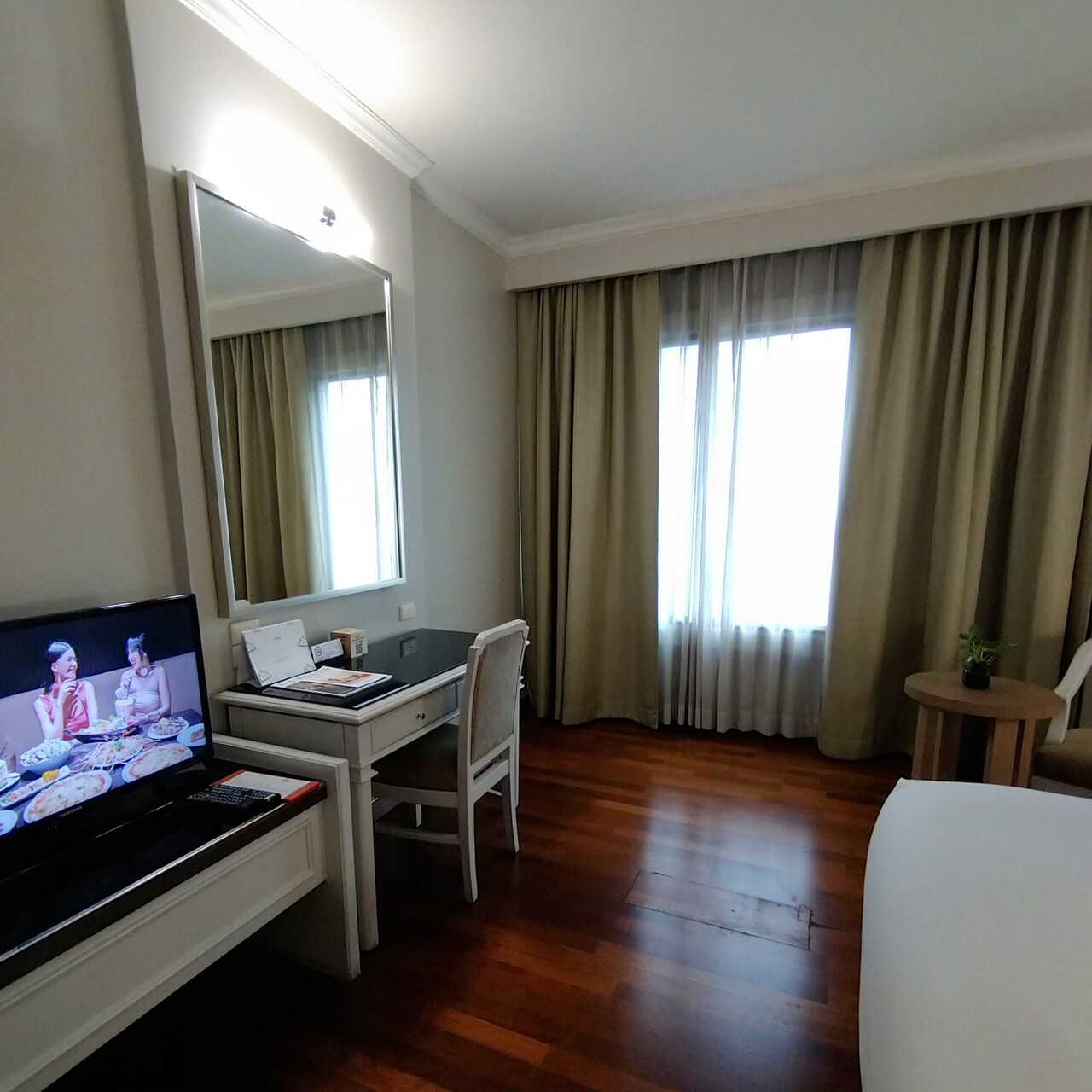 パノラミックエグゼクティブスイートに宿泊しました。各階のチャオプラヤー川に面した曲線の窓があるお部屋です。