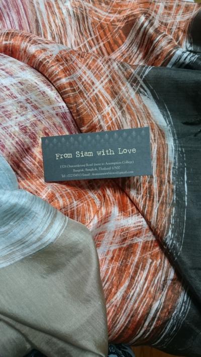 シルバーアクセサリー、リネンの洋服、シルク、コットンのストール等、どれも自然素材で上品でセンスのよい、こだわりを感じる素敵なものばかりのお店です。私は手描きのシルクのスカーフを買いました。なんと1000バーツです。