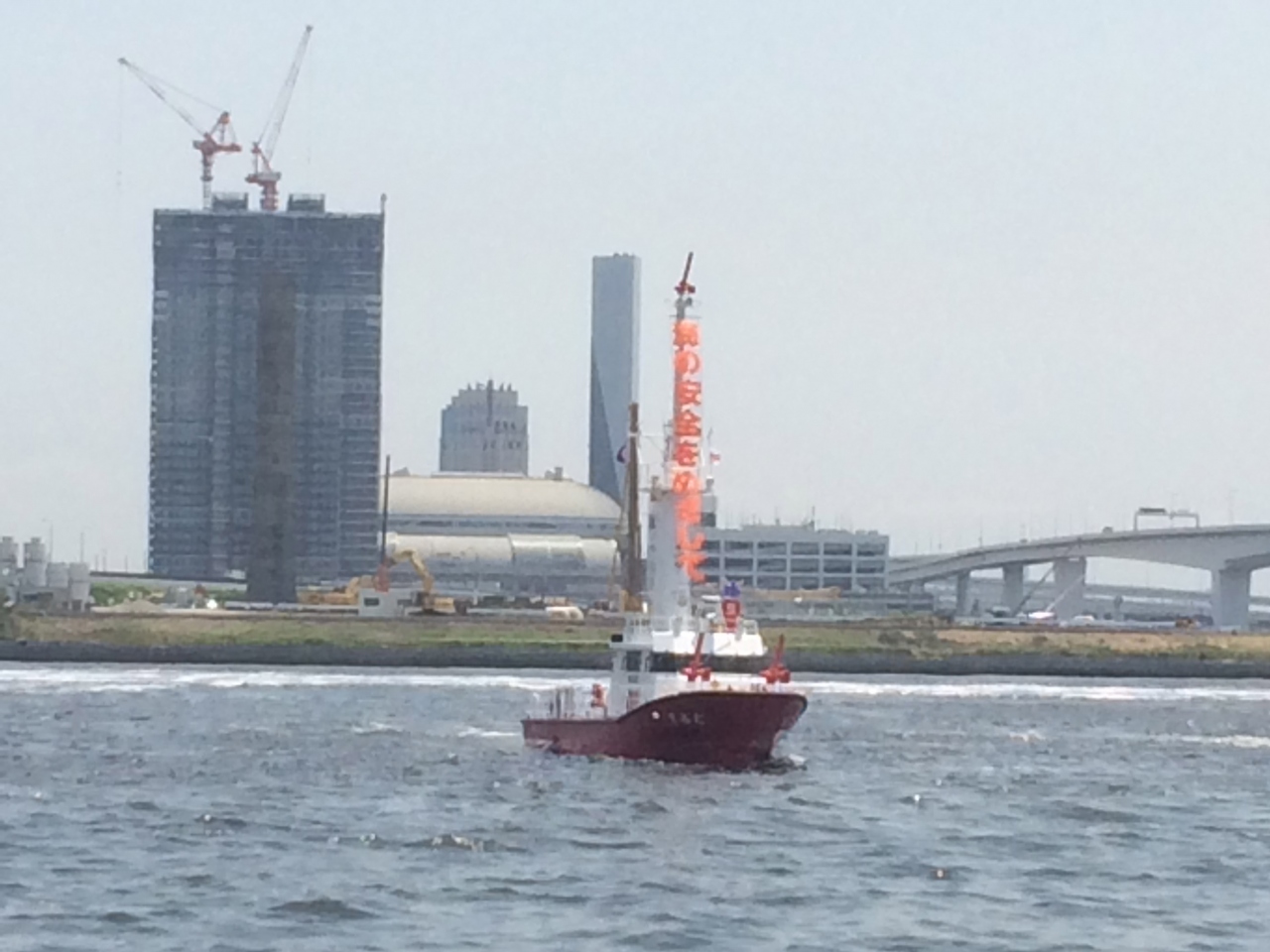 毎年恒例の東京消防庁主催の水の消防ページェントにいってきました。晴海客船ターミナルから見える海が会場で、一般の立ち見席、トイレに利用されていました。働く車、船、飛行機が大好きな息子のためにでかけましたが、夫婦二人とも大興奮、子供は飛び跳ね、拍手喝采の喜びようでした。