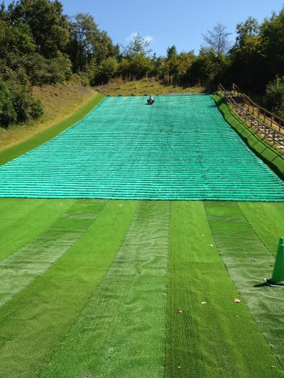両親が赤磐市に住んでおり、息子(1歳半)の外出先として訪れました。うさぎや豚、ヤギと触れ合える場所があり、一日に2回シープドックショーがあります。芝そりすべりは高さがかなりあり、スピードもでます。20分で300円。親子で滑りました。小さな子で動物が好きな子ならかなり楽しい場所だと思います。ただ夏場は日向だらけなので、長時間滞在は厳しいかも。向こう5年くらいは里帰りした時の定番スポットになりそうです。