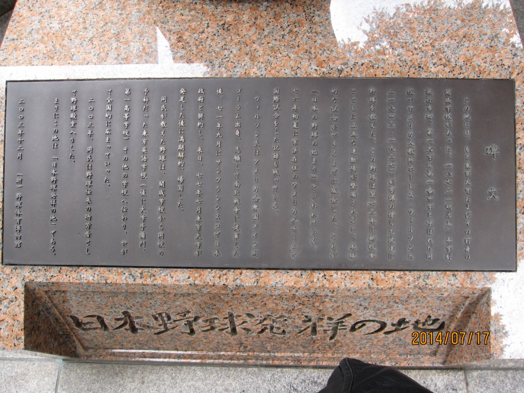 まさのこの地は「日本野球発祥」の地である。- 旅行時期