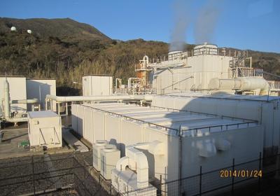 同じ敷地にある地熱発電所の起こす電力は、島のベース電源にあたる約2.000KW(25%)を賄っています。