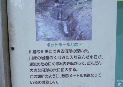 川底や川岸にできる円形の深い穴が数百メートルにわたり連なって、非常に珍しいケースです。