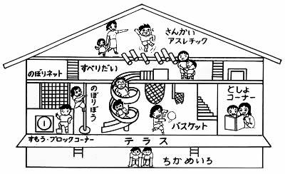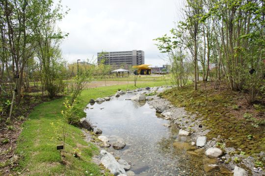 広い敷地に「げんき里山」があり、自然を体験・学習できます。ここには「里山ゾーン」、「小川ゾーン」、「遊びの広場」、「桜並木」の4つのゾーンがあります。