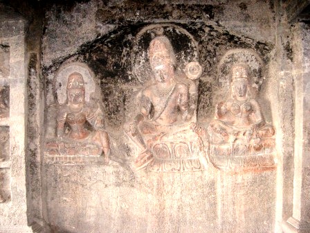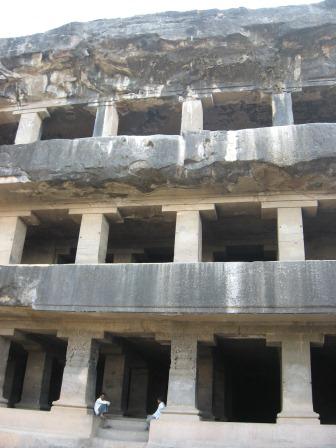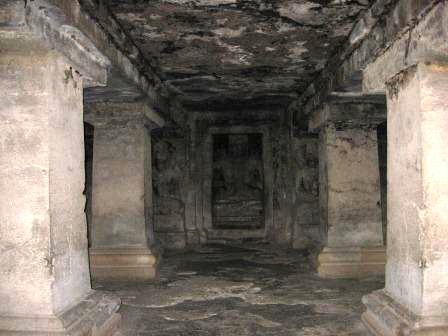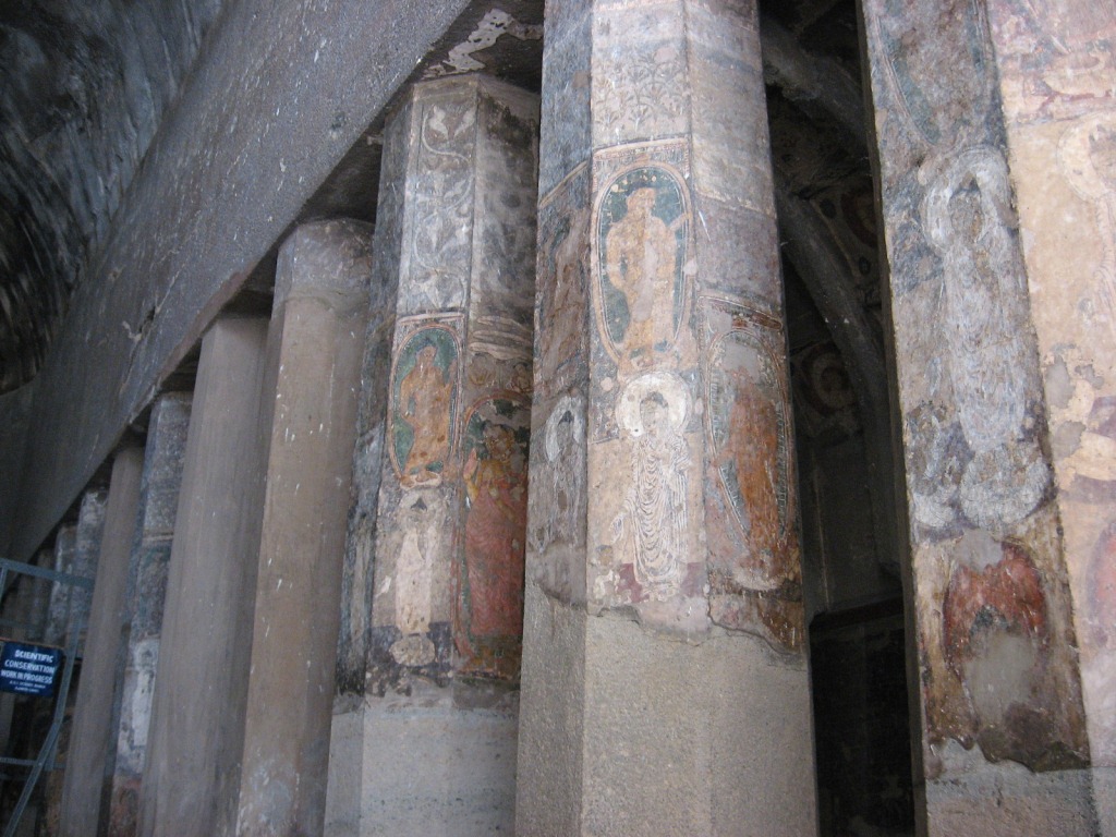 前期窟は真ん中あたりの5つの簡素な石窟群で、内部にはさしたる装飾もなく、ストーパ(仏塔)を礼拝対象として刻み出しています。