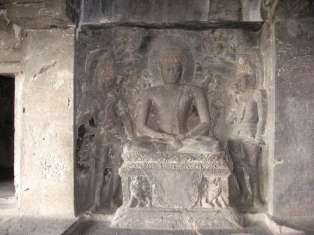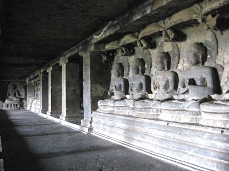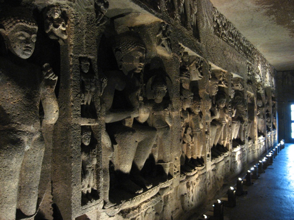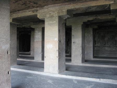開窟が再開されたのは、インド文明が黄金期に輝く5世紀中葉で、当時中央インドを支配していたヴァーカータ帝国の信仰に篤い家臣団が、財と威信をかけて造営を試み、より荘厳に、より豪華に石窟寺院群を築きました。