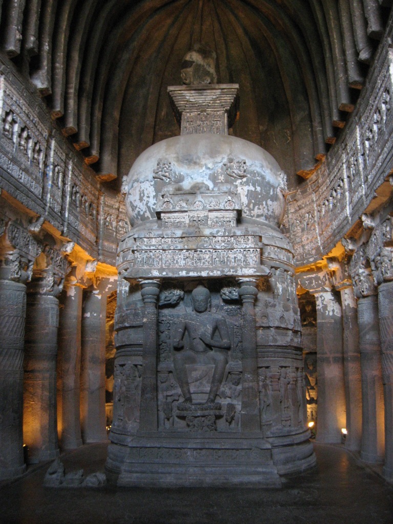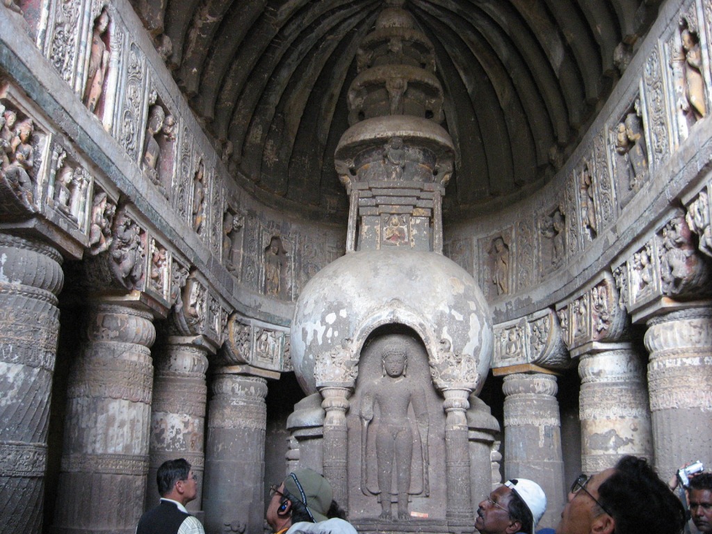 アジャンターの石窟寺院が開かれたのは、二つの時代に分けられます。紀元前1世紀頃の前期窟(上座部仏教期)と紀元5世紀の後期窟(大乗仏教期)です。