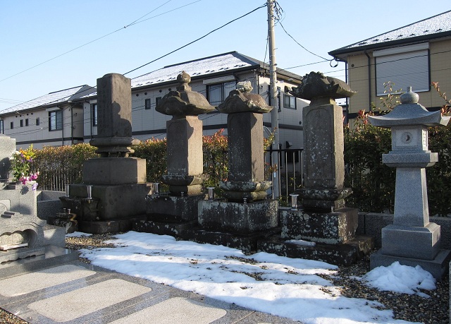 江戸時代の都筑郡奈良村領主、石丸家三代(有定、定政、定次)の墓碑があります。