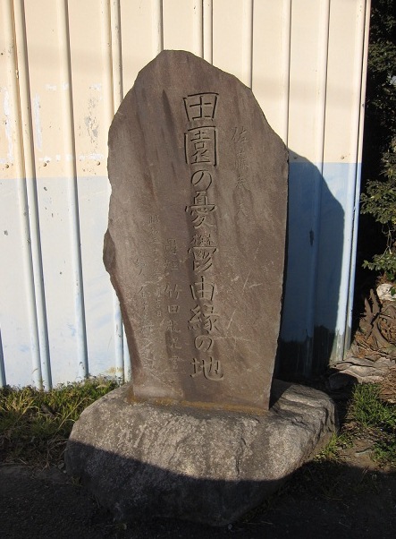 文学碑「田園の幽鬱由来の地」は小説に登場した金子美代子さんが私費を投じて建てられたものです。
