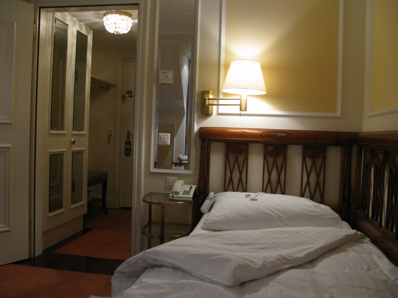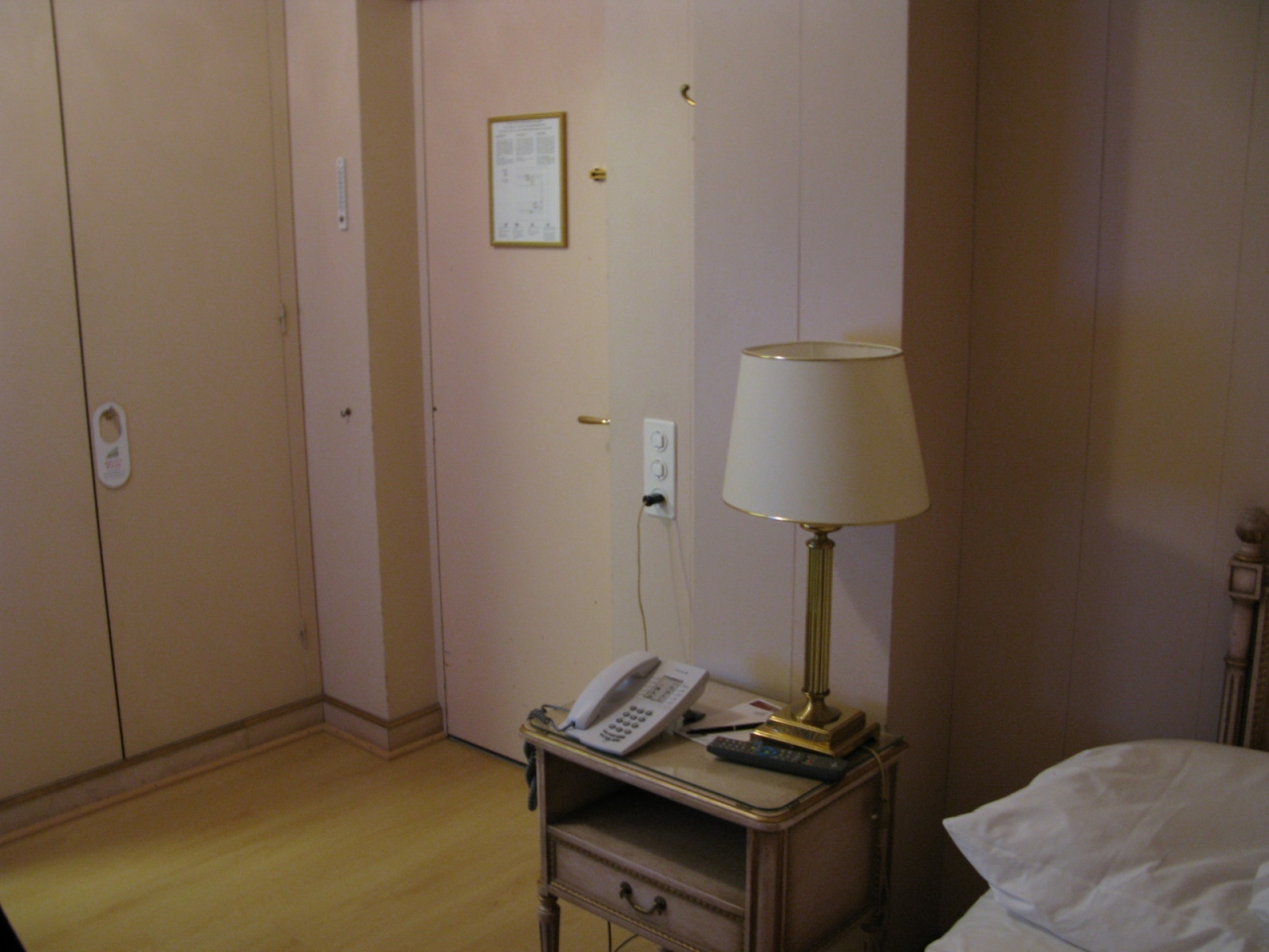 ベッドサイドのドアはすぐ通路、クローゼットのとなりは、ハウスキーピングルーム残念ながらくつろげず。- 旅行時期