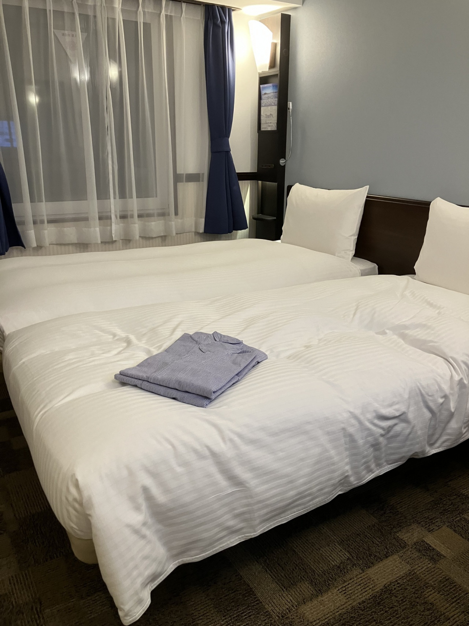 パジャマ、アメニティはチェックイン後にフロント階で頂きお部屋に持ち込むスタイル。コンビニもあります。