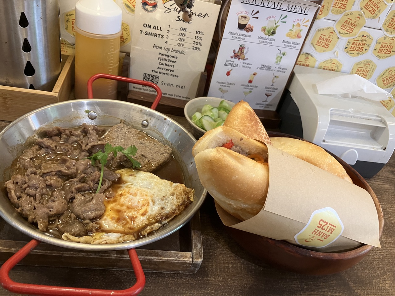 バインミー(トラディショナル、チリ抜き)とビーフシチューを頼みました。