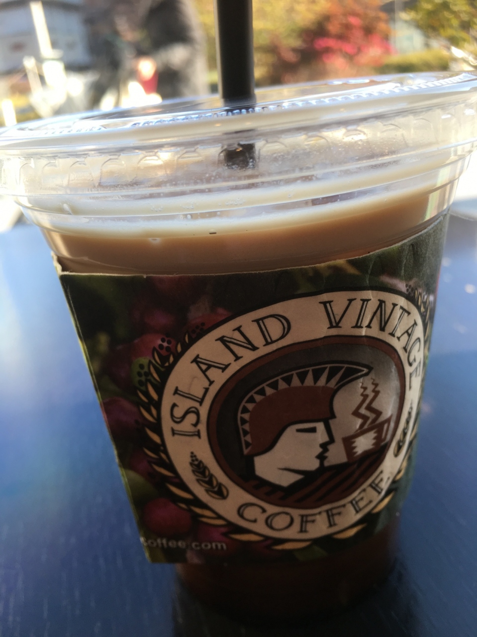 店内は暑いくらいの温度設定で、アイスコーヒーと定番のアサイーボウルを半分こしました。