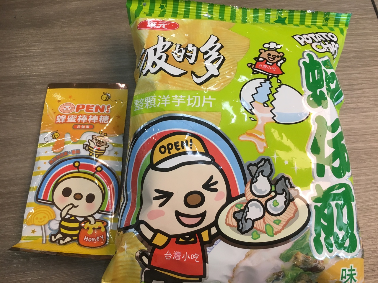 お店のキャラクター、オープンちゃんが可愛くて、オープンちゃんがパッケージデザインのお菓子を選びました。