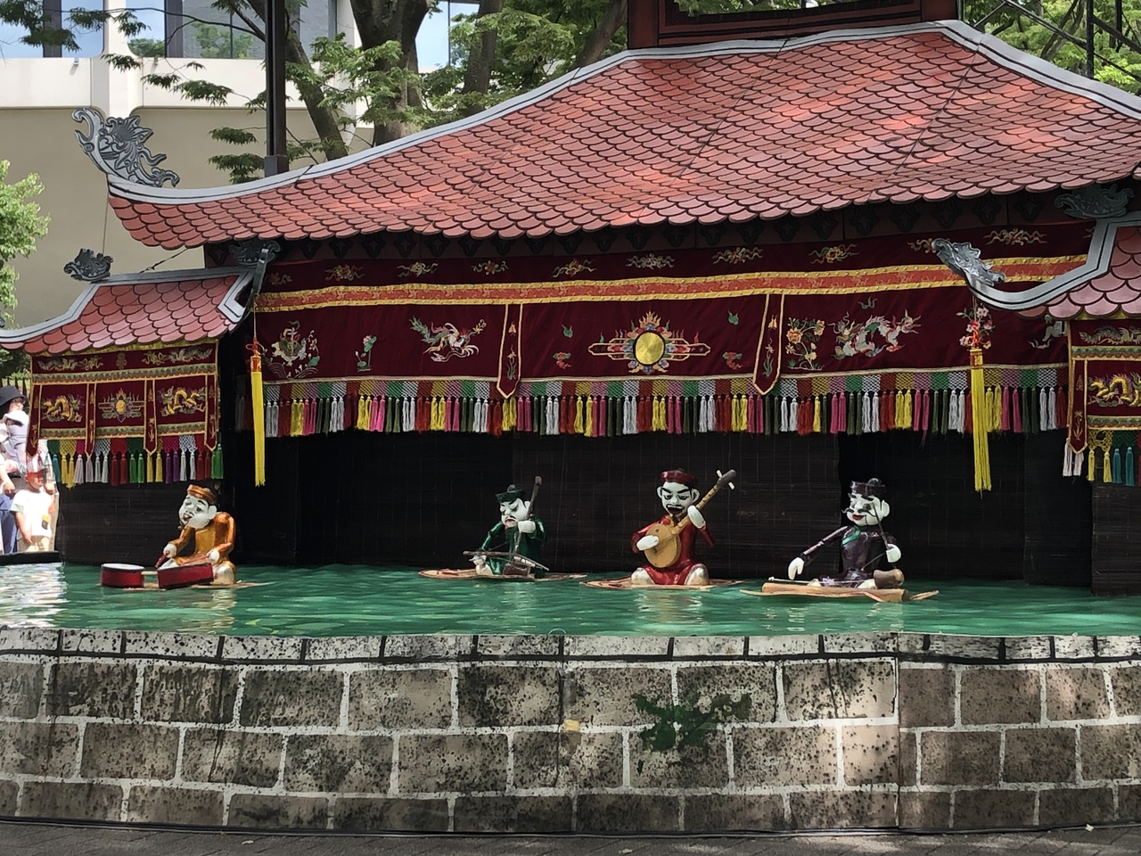 水上人形劇は時間を確認して早めに待機したので