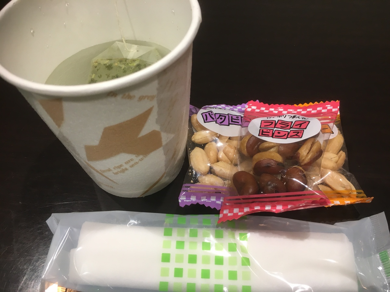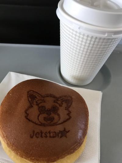 機内販売メニューからどら焼きセットを注文しました。- 旅行時期