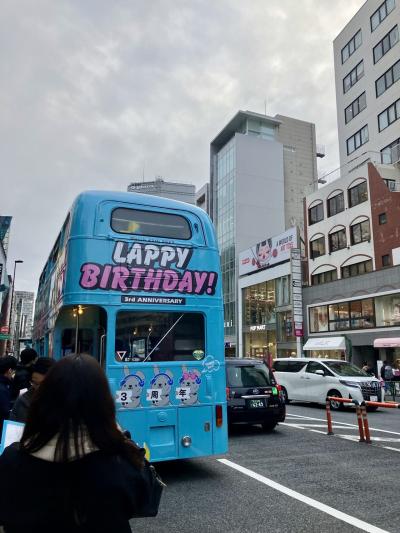 TBSの番組ラヴィットのキャラ、LAPPYの3rd birthdayという事で赤坂見附⇔原宿間をこちらのラッピングバスが数日間走っているそうです。