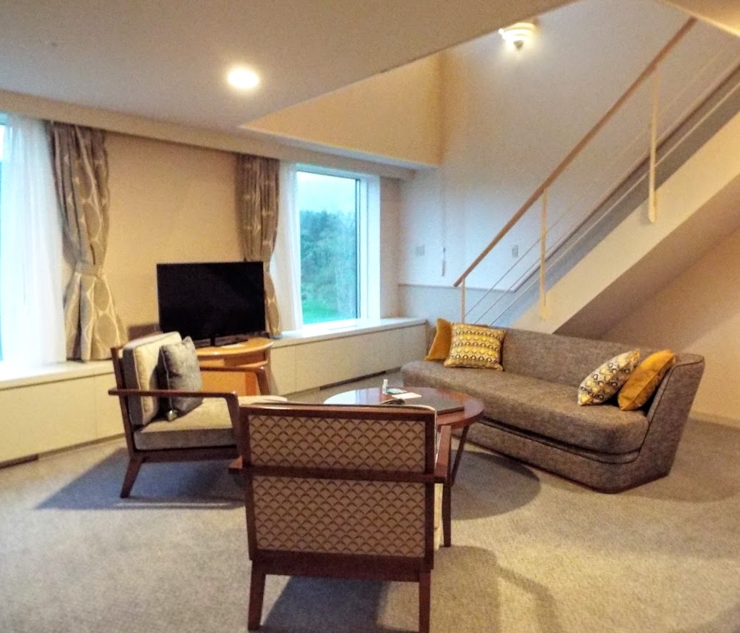ルスツ高原のホテルに到着し、まず驚いたのは、余りの広さのマイルームと独り占めできる部屋からの雄大な景色の眺めです。「ウエスティンルスツリゾート」は、札幌から南西へ75㎞、支笏洞爺国立公園に囲まれた雄大な自然あふれる高原に位置し、四季折々の景観が楽しめるリゾートです。