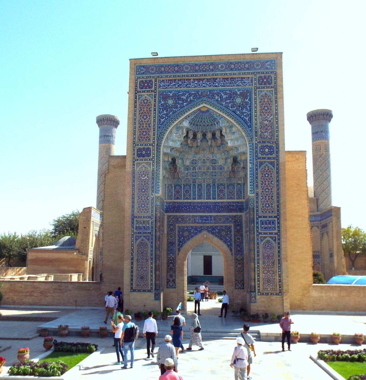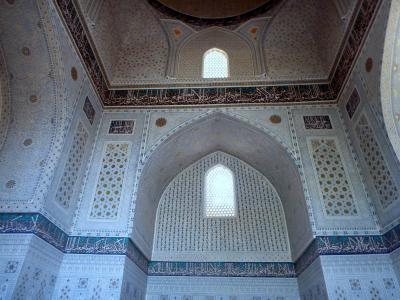 ここには、チムール族の女性や聖人が眠っています。サマルカンド随一の聖地で、ティムールの関係者のお墓がズラッと並んでいる「死者の通り」です。11世紀から20世紀にかけて、多くの霊廟が建てられました。入るとすぐ夏のモスクがあります。