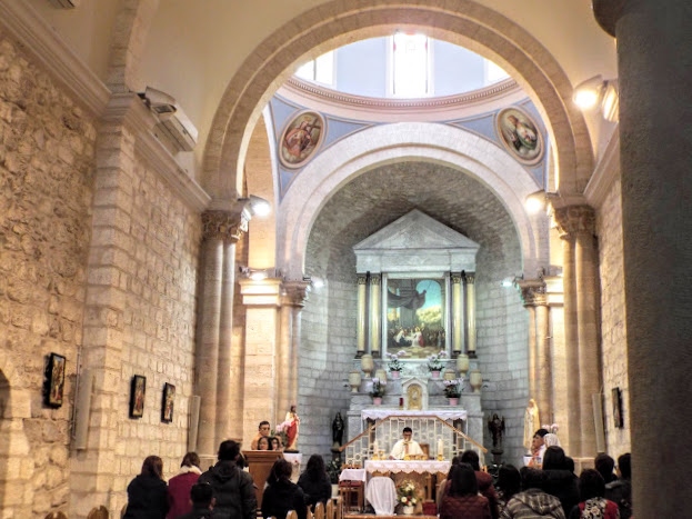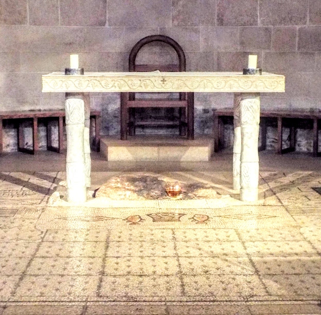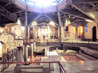 現教会は19世紀~20世紀初めに建設されました。地下に入ると、十字軍時代の建物遺構ずあり、ここから石製食器が発見され、ユダヤ人の家だったとされています。洗礼を受け、公生活に入ったイエスが生涯で最初に奇跡を行った場所とされます。