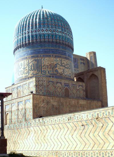 アミールはアラビア語で司令塔や総督という意味です。ティムールとは、ウズベキスタンの英雄で指導者の名前です。グル・アミールは、タジク語で支配者の墓という意味です。ティムールとその子孫が眠る墓で、青いドームが特徴です。