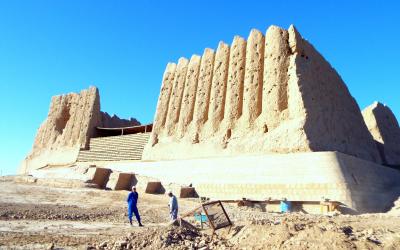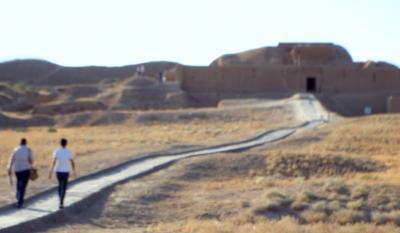 トルクメニスタンの南西部に位置するパルティア王国の初期の首都だった「ニサ遺跡」へ。王の建造物群のあった旧ニサと、民衆の居住地区であった新ニサの2つの遺丘で構成される都市遺跡です。ニサのパルティア時代の城塞群として世界遺産に登録されています。