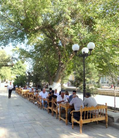 二連泊するウズベキスタンのブハラの「グランド・ブハラ」と言う、とても立派な大きなホテルです。到着すると、美味しいお茶やお菓子などで出迎えてくれ、ロビーにはいろいろ買い物するお店もあり、マイルームからの眺めも最高のホテルでした。