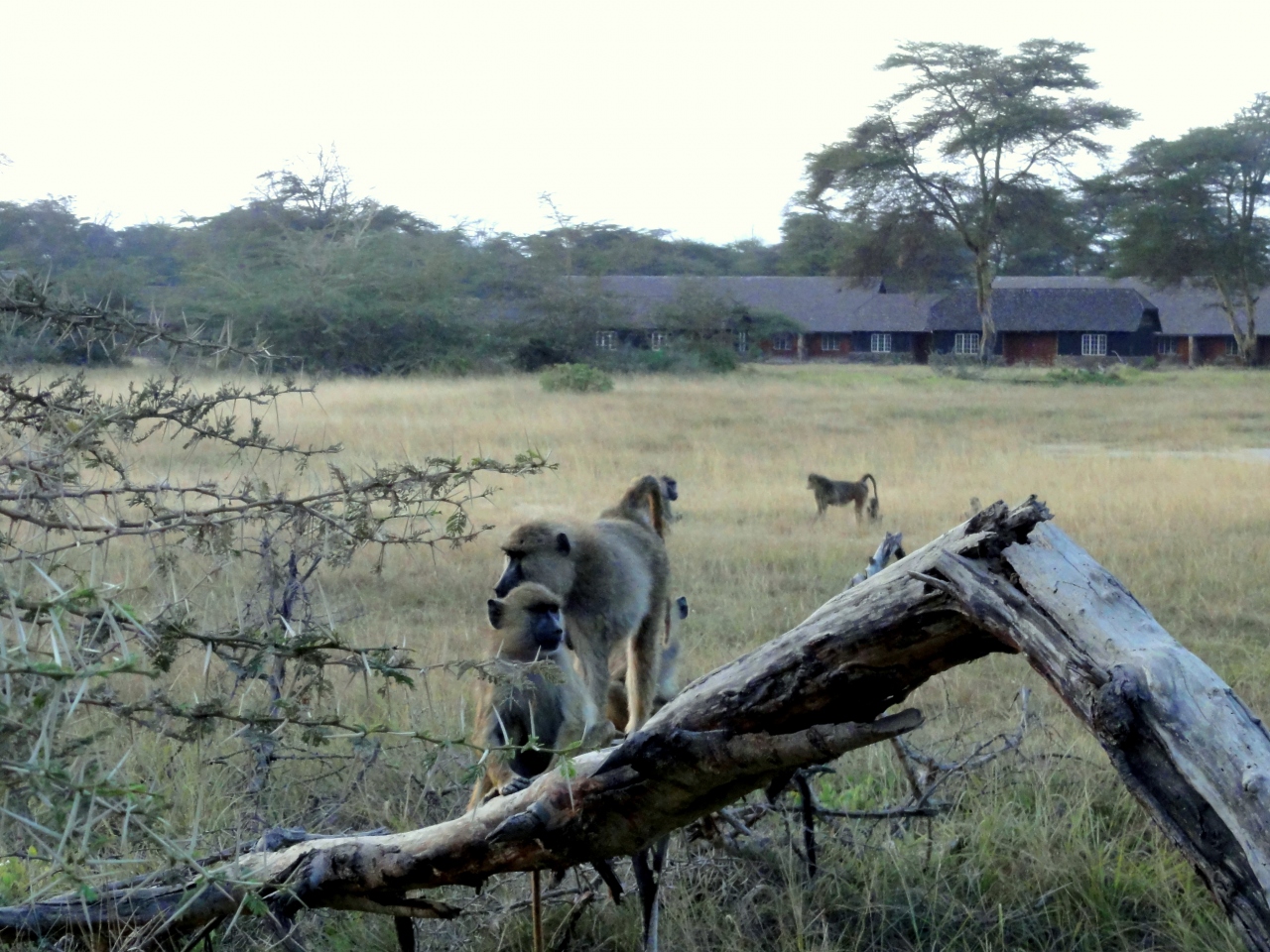 アフリカの旅の宿泊は、ナイロビ以外は全てロッジで、ここ「レイク ナクル ロッジ」も他のロッジと比べても、甲乙点け難い程のとても広い敷地を持つ素敵なロッジでした。部屋の周りには、沢山の猿達がのんびりと過ごしていました!!