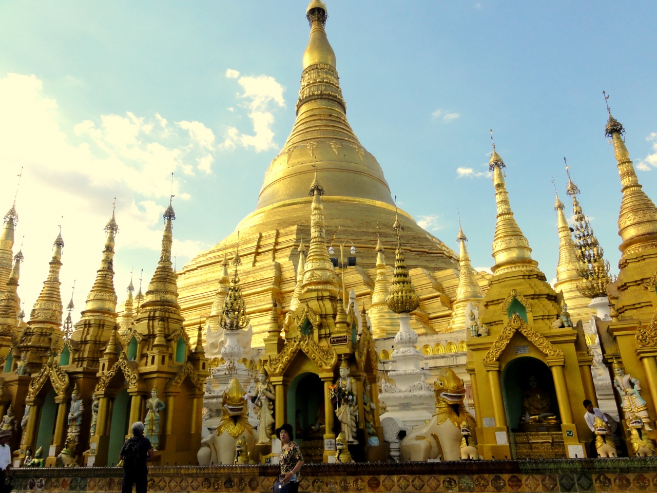ミャンマーで一番有名なパゴダがこの「シュエダゴン・パゴダ」です。シュエは金、ダゴンは、ヤンゴンの古い名前だそうです。仏塔の高さは100mもあり、頂上の風見鶏の先端には、76カラットのダイヤモンドがはめ込まれています。金のプレート8688枚、ダイヤモンド5451個、ルビー1383個は、善男善女の寄進によって集まったものだそうです。