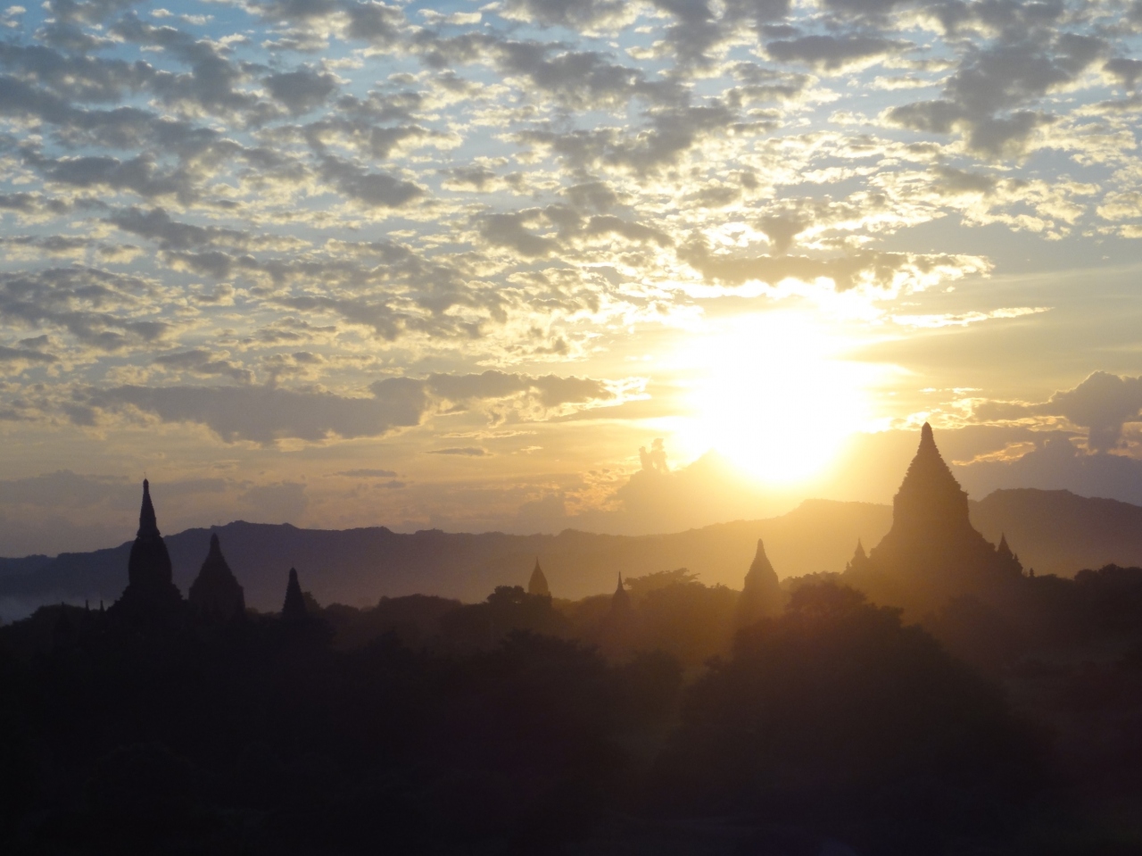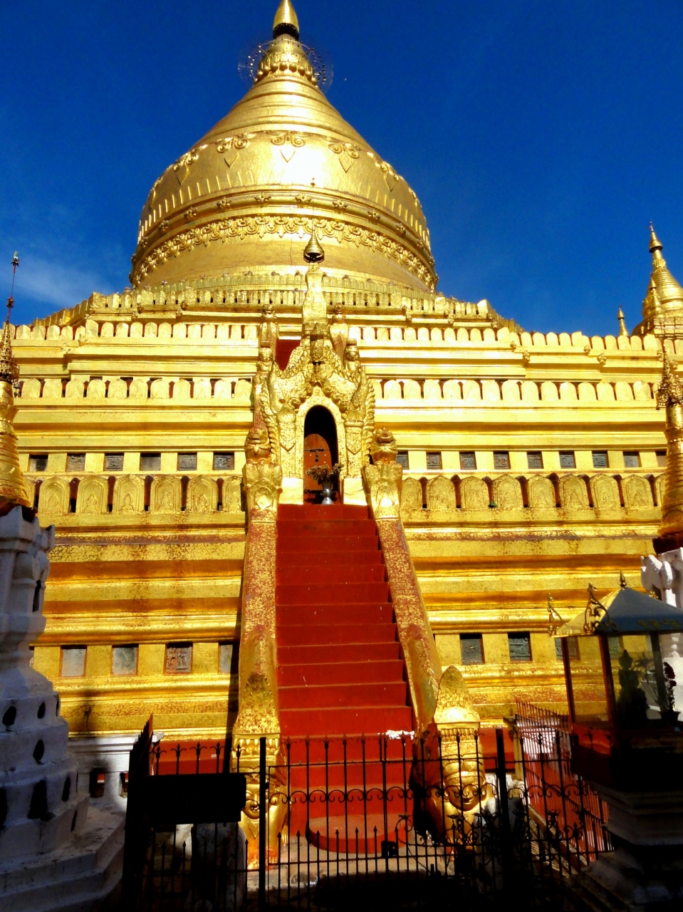 夕日に照らされ、オレンジ色(黄金)に浮かび上がる「シュエサンドーパゴダ」の幻想的な美しさに我を忘れて見入っていました!! パゴダの最上階に上り見下ろした寺院群の景観は、もう本当に絵葉書以上の美しさでした!!