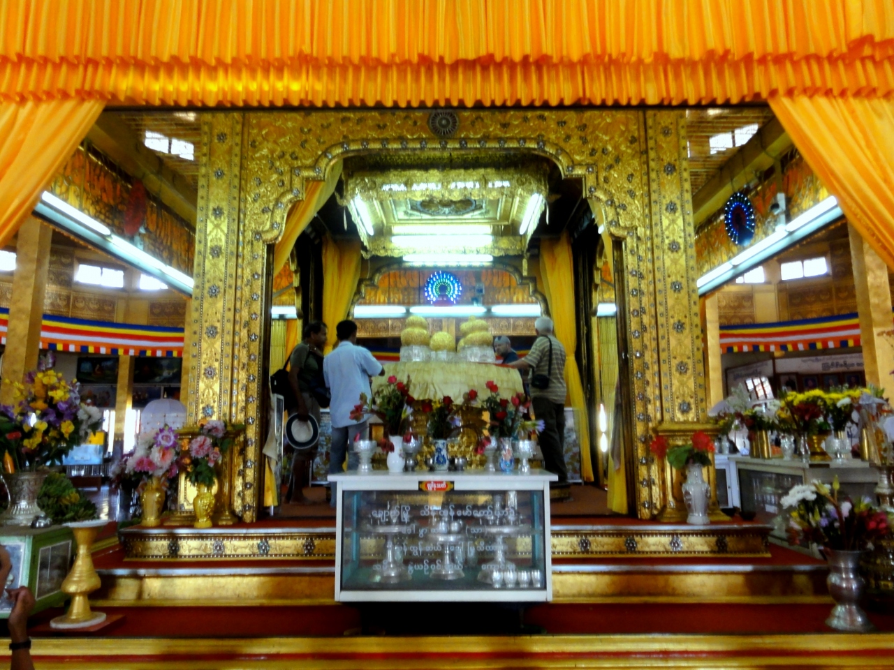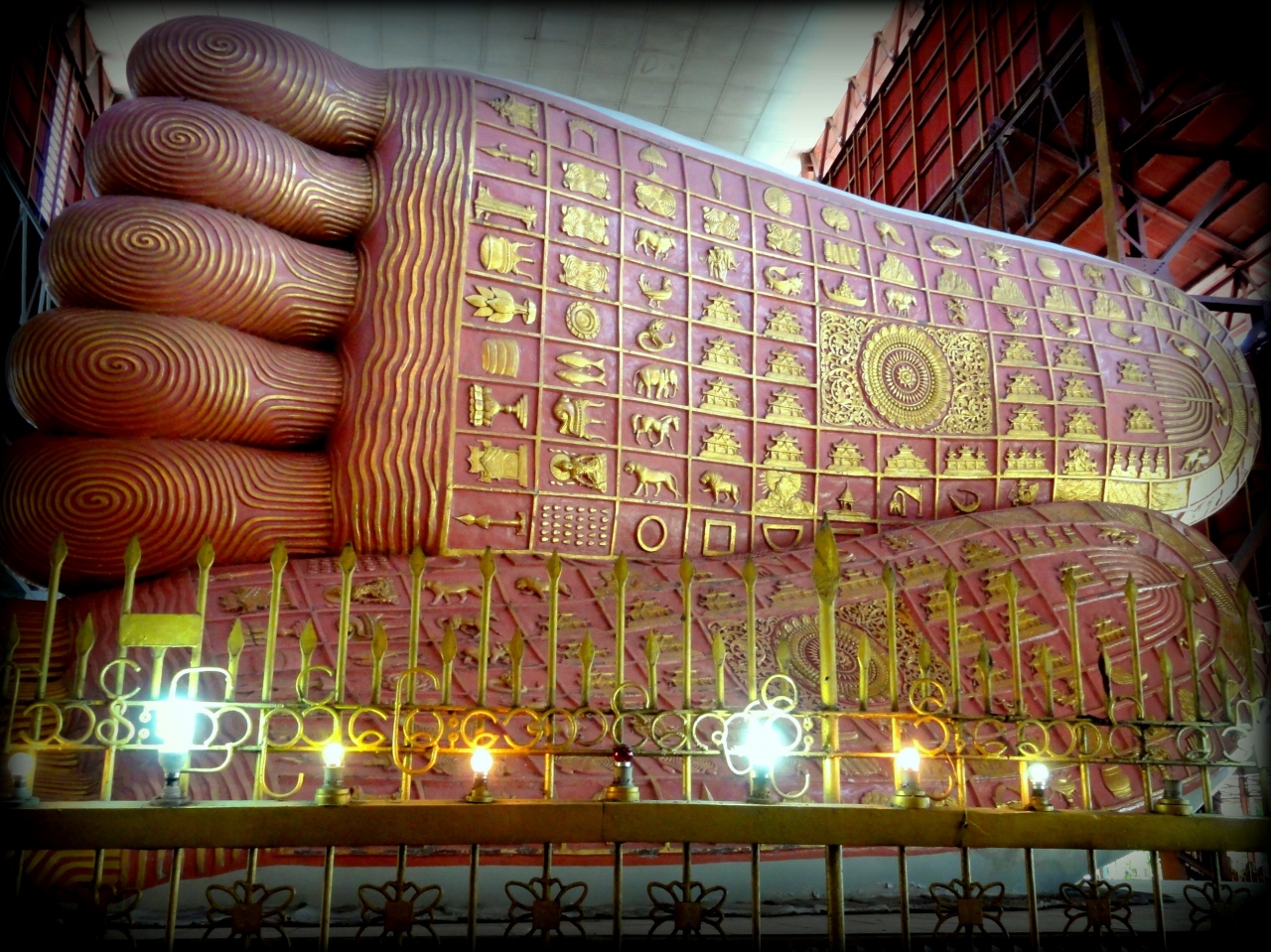 高さ17.7m、長さ65.8mという巨大な寝釈迦仏が有名なパゴダです。1907年に建立されたが、気候などの影響で老朽化したものを、1996年に改装し直しました。大きさもさることながら、とても厚化粧の仏様でした。