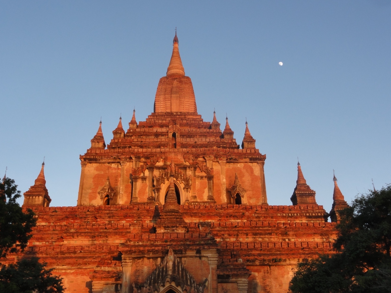 ニャウンウーの西のはずれにあるバガン仏教遺跡群の中に建っています。11世紀に、ビルマ族による最初の統一国家を創建したバガン王朝の始祖アノーヤター王が建設に着手したが、在位中に完成せず、第2代のチャンジッタ王が1089年に完成させました。元々は、エーヤワディ川の川辺に建てられていたが、洪水を避ける為に現在地に移築されました。この寺院には、仏骨・仏歯が安置されています。